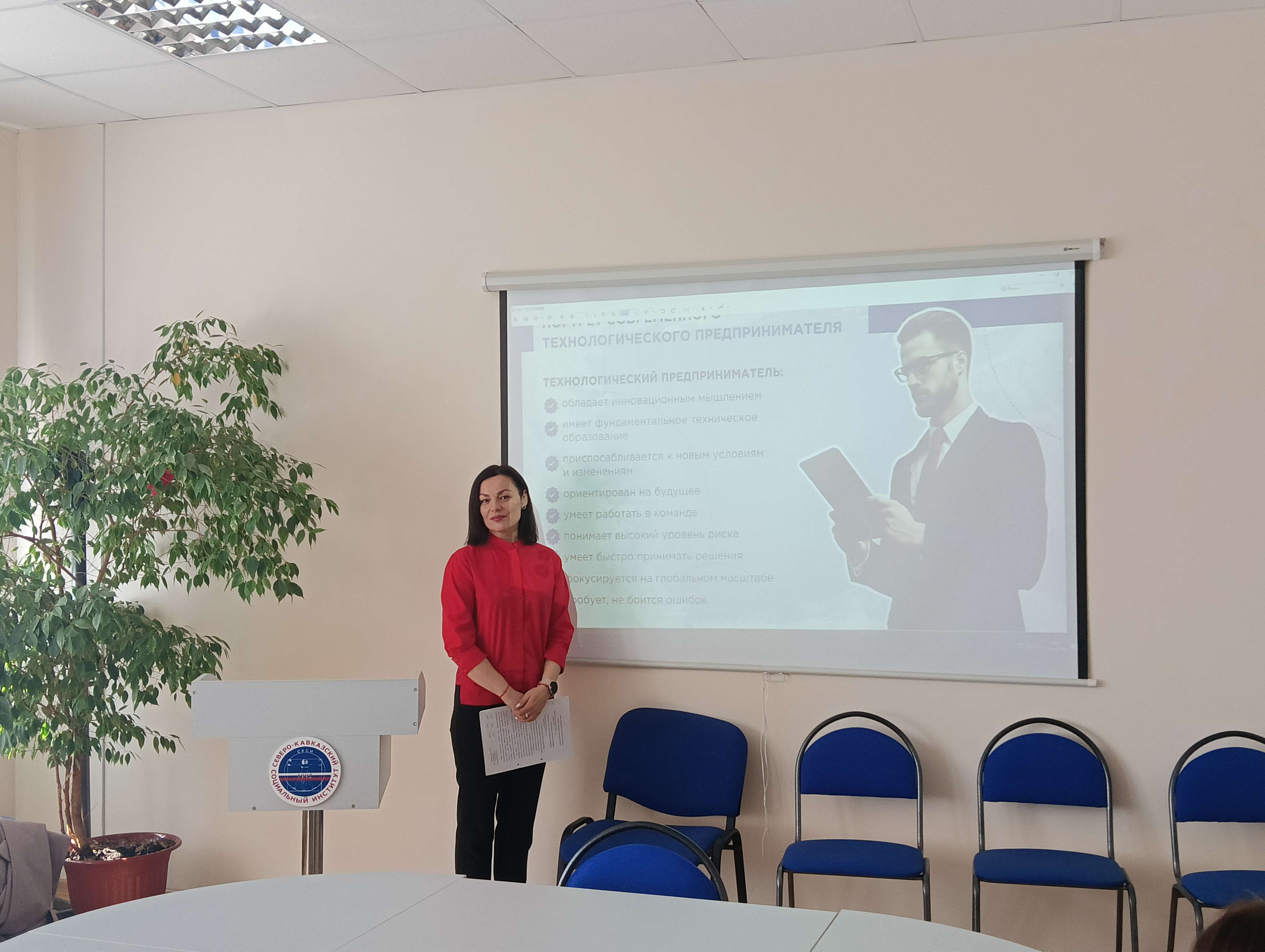 24 сентября 2025 года преподаватель кафедры экономики и менеджмента Северо-Кавказского социального института Алла Витальевна Зацаринина провела интерактивный кураторский час со студентами экономического факультета на тему «Бизнес и технологическое предпринимательство в современном обществе».