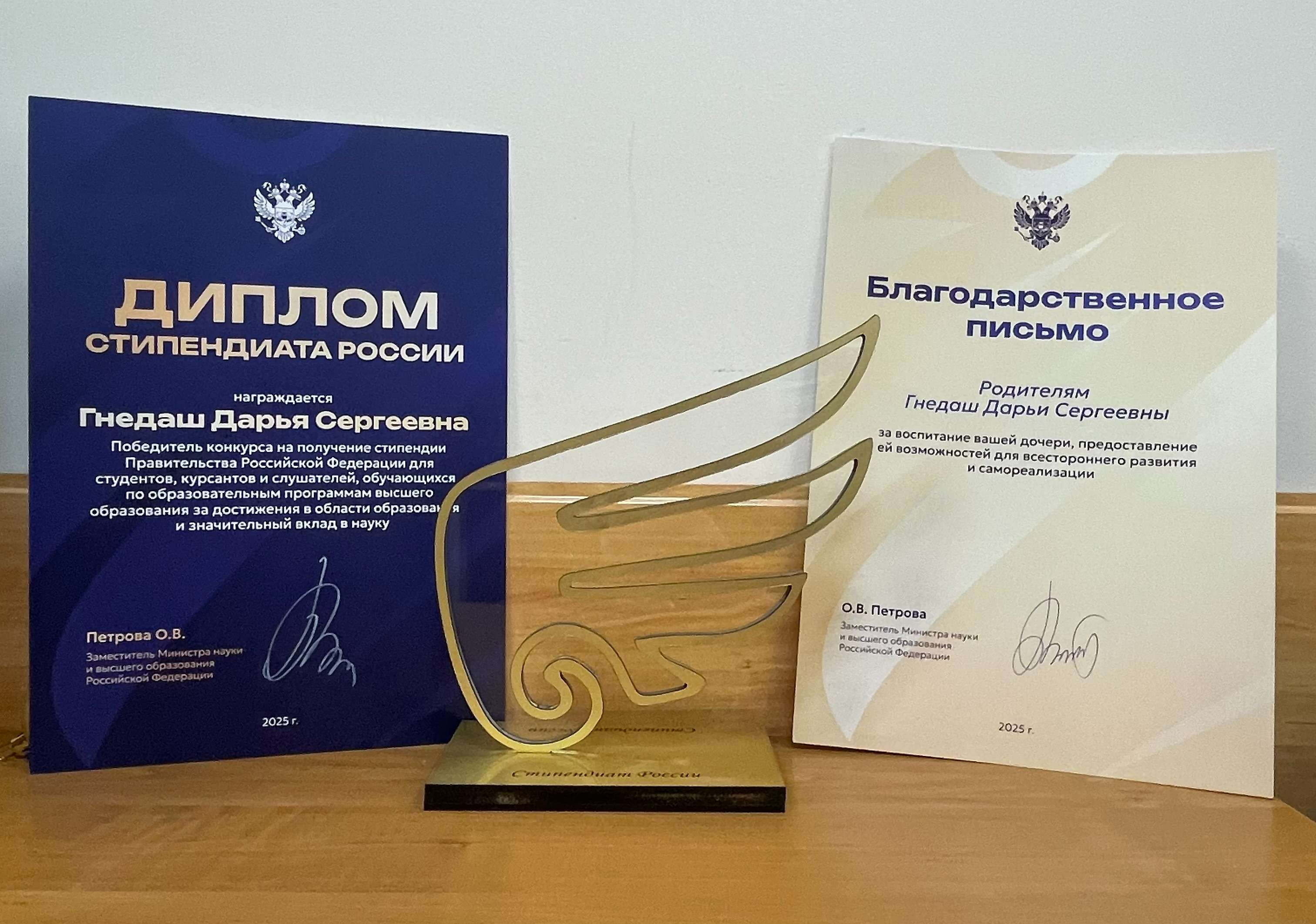 Поздравляем стипендиата 2025 года, студентку юридического факультета Гнедаш Дарью Сергеевну, ее научного руководителя Волосюка Павла Валерьевича и весь Северо-Кавказский социальный институт с достойной наградой Минобрнауки России!