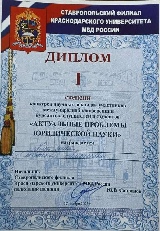 17 ноября 2025 года в Ставропольском филиале Краснодарского университета МВД состоялась международная конференция курсантов слушателей и студентов «Актуальные проблемы юридической науки». В научном форуме приняли участие представители из различных образовательных организаций России и стран СНГ.
